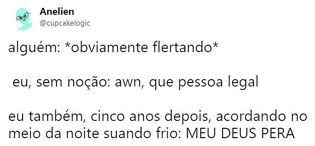 A arte do flerte é dominada por poucos e, é claro, não por essa que vos escreve. Se você veio até aqui buscando dicas de como ser bem sucedida no flerte está perdendo seu tempo. A única coisa que eu faço é compartilhar com azamigue experiências frustradas, foras, ghostings, orbitings e todos os nomes bonitos que dão agora para o bom e velho pé na bunda. Aguarde o post sobre foras.
