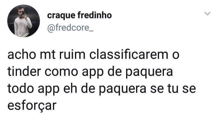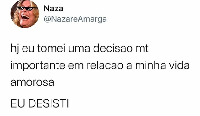 O importante é ativar os filtros e não deixar a carência falar mais alto, pois sabemos bem que “a carência é a mãe da roubada.” (AVERBUCK, Clara, 2018).